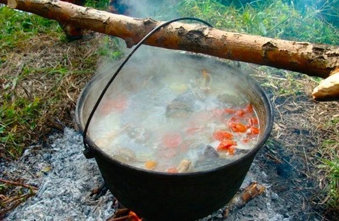 Уха из форели, приготовленная в походе на костре