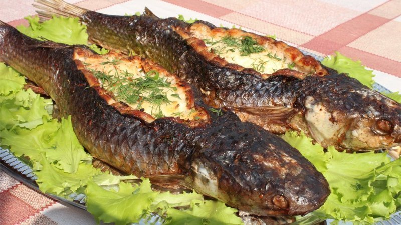 - Пеленгас освободить от чешуи, внутренностей, заправить солью, пряностями.