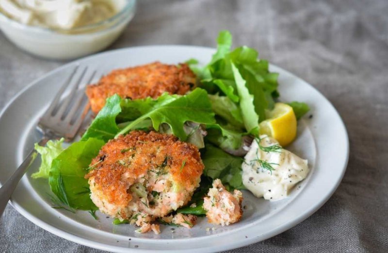 Подавайте котлеты с любым гарниром или белым соусом, который прекрасно сочетается с рыбой.