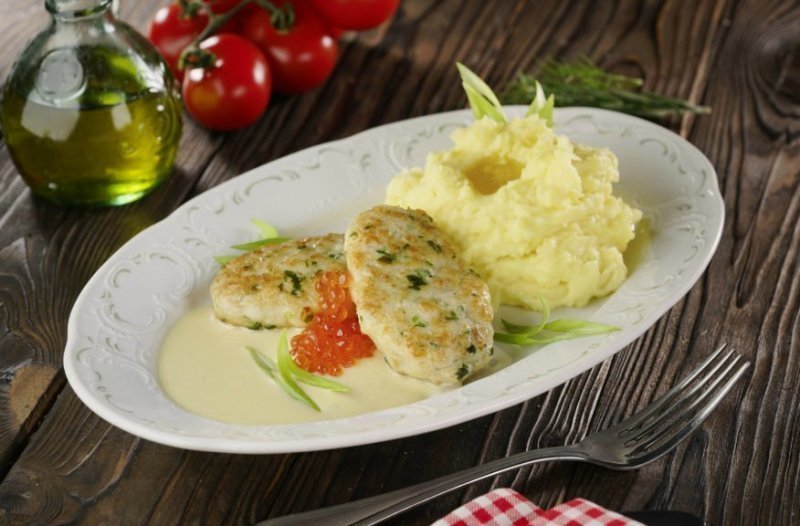 Рыбные котлеты с шампиньонами готовы. Они отлично подойдут к картофельному или гороховому пюре, а также к рису.