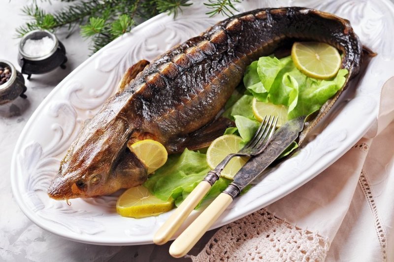 Толстая и грубая кожа делает эту рыбу идеальным вариантом для фаршировки. Для запекания фаршированного осетра в духовке целиком, лучше всего использовать экземпляр до двух с половиной килограмм. Этого объема хватит для приготовления блюда, а рыбина сможет поместиться в духовке.