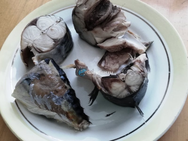 Достаем отварную скумбрию, даем остыть и удаляем все кости.