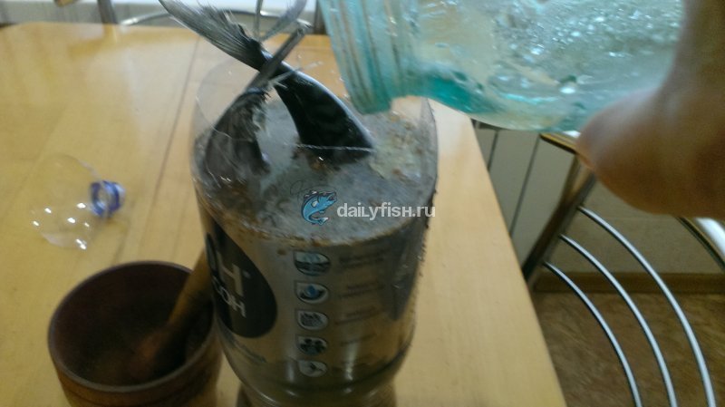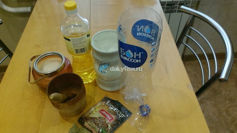 После того, как рыба просолится – использованную пластиковую бутылку просто выбрасываем. И хозяйка довольна и кастрюли драить не надо!