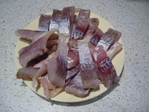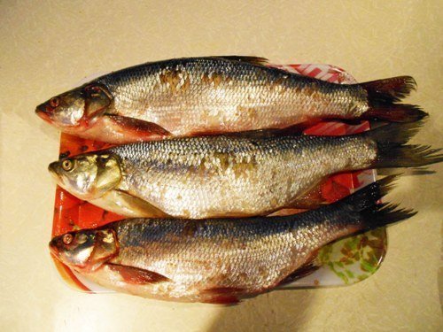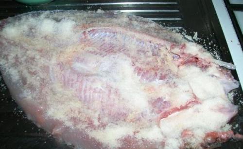 - Если рыба весит больше 2 кг, то обязательно надрезать ее вдоль позвоночника, не перерезая кожу на спине.