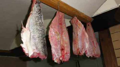 Когда жерех слегка просохнет, на это примерно уйдет от 2 до 4 часов, и с него стечет вода, закладываем внутрь рыбы веточки укропа, так же можно добавить порезанный зубчик чеснока. Затем убираем на сутки балык из жереха в холодильник или другое какое прохладное место , обернув пергаментом или хлопковою тканью. Ближе к ночи, когда гнус и мухи успокаиваются балык из жереха вывешиваем на открытый продуваемый воздух, поставив распорки.