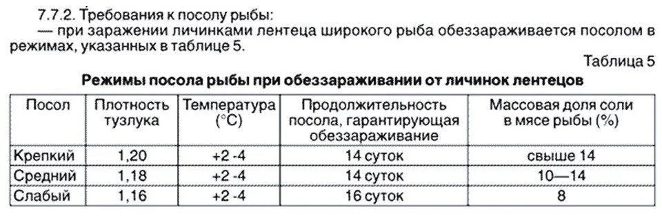 Таблица из СанПиНа (санитарные правила и нормы в отношении посола рыбы):