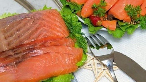 В результате подобных действий получается готовый продукт, который по вкусу и цвету соответствует семге. В данном случае, нужно взять тушку, весом до 1 кг.