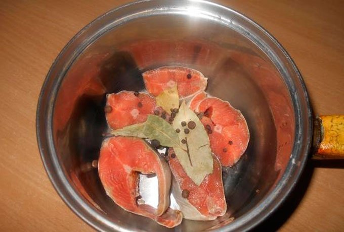 - горбушу желательно готовить в стеклянной, керамической или пластиковой таре.