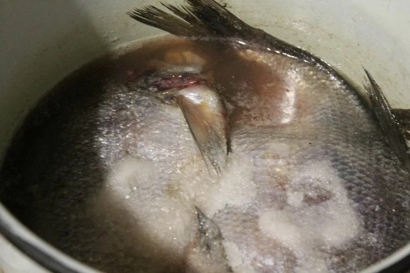 Через трое суток рыбу достаем, промываем в чистой воде, кладем в большую емкость для вымачивания. Емкость по размеру должна быть большая, чтобы рыба в ней лежала свободно. Идеально вымачивать под проточной водой восемь-двенадцать часов.