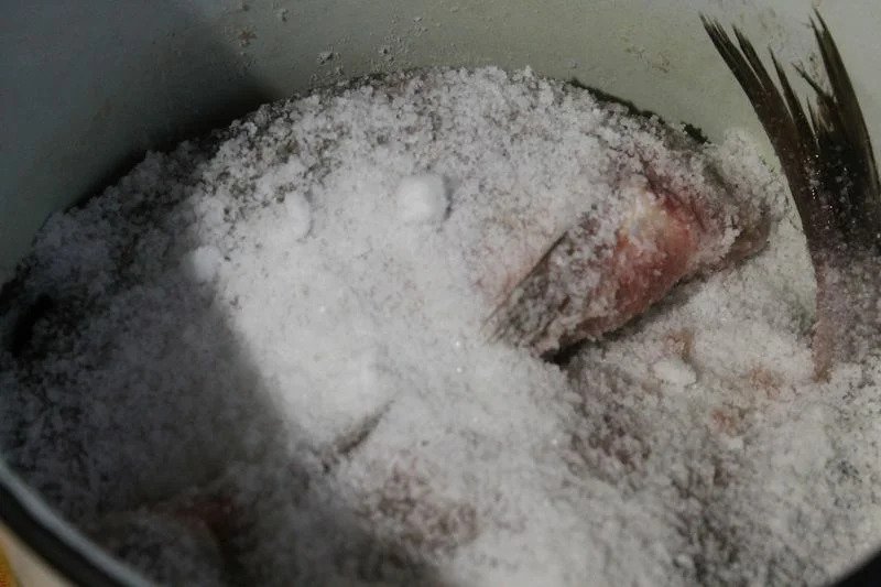 Соли должно быть много. Свежайшую рыбу не чистим, ополаскиваем в воде и складываем в эмалированную кастрюлю на дно которой насыпана соль щедрой рукой, соли много, а хоть и сантиметр! Рыбу укладываем плотно друг к другу, посыпая каждый слой солью, чтобы соли опять много, чтобы щедро, чересчур.