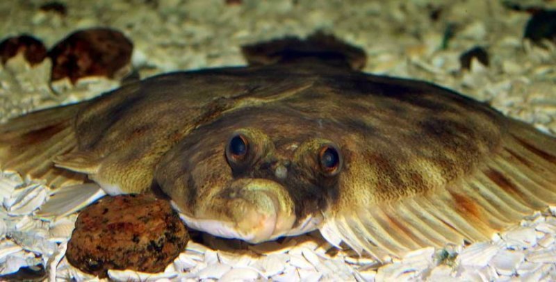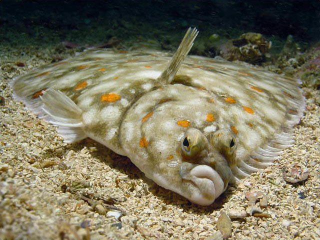 Камбала может изменять окраску верхней плоскости тела, что помогает ей в маскировке под любой характер дна.