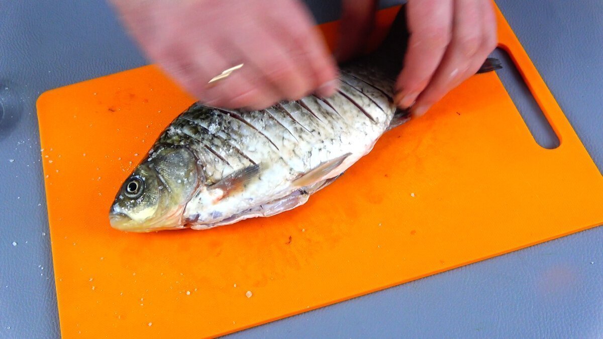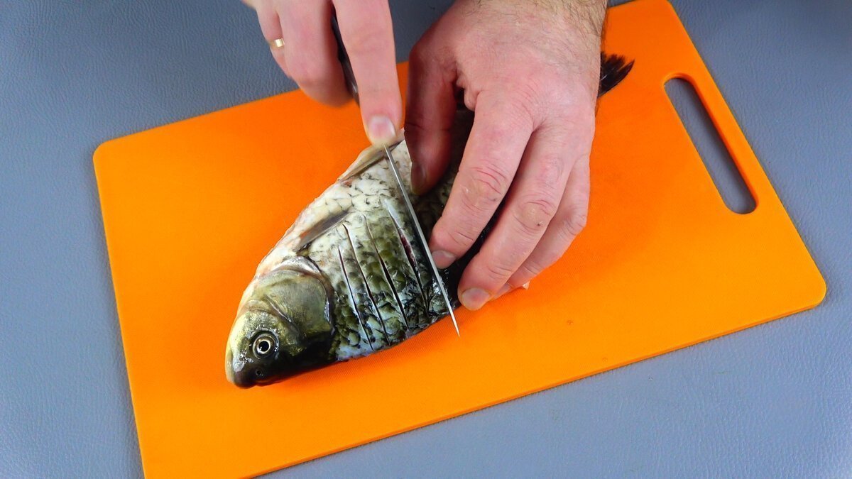 Как чистить от чешуи, от внутренностей и как удалять жабры, знают все. Но не все знают, чтоб после жарки не так сильно чувствовались мелкие косточки, нужно сделать надрезы с обеих сторон тушки. Чем чаще надрезы, тем меньше костей вы будете "встречать".