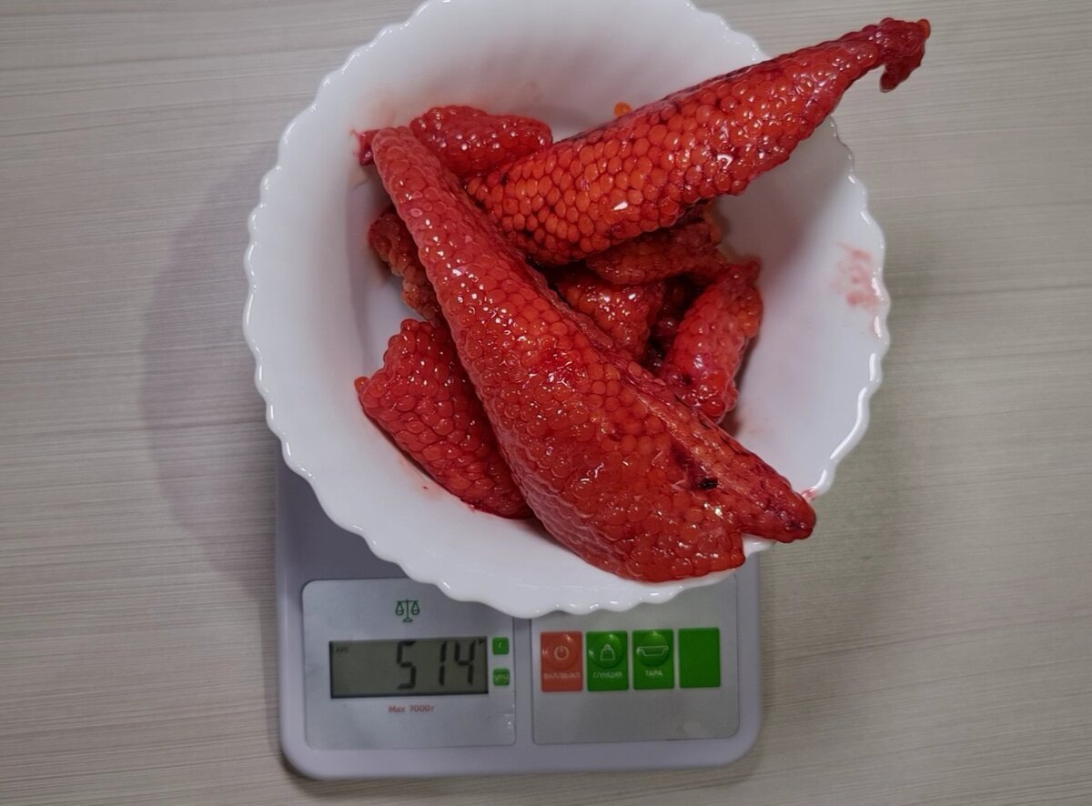 Покупаем мы горбушу в "Светофоре", по цене чуть больше 200 рублей. Перед Новым годом я купила целых четыре рыбины, исключительно из-за икры. Обошлась она в 850 рублей, а икры вышло 500 гр. Отличный бонус, не правда ли?