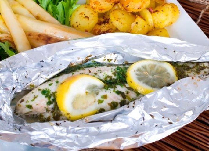 - Подготовленное блюдо заворачивается в фольгу и помещается на противень.