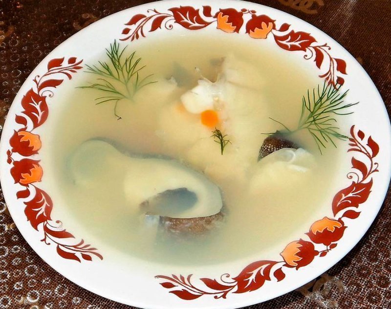 - Из бульона извлекаются кусочки рыбы, а сам бульон процеживается на мелком сите.