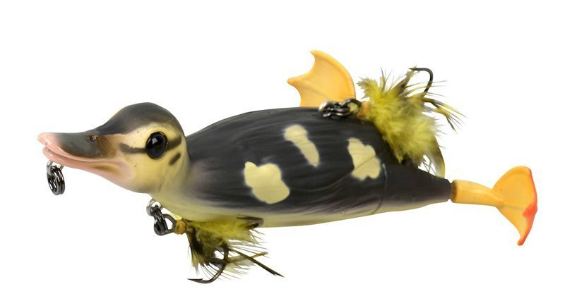 Как и свойственно настоящей утке, у приманки утёнок по бокам есть две лапки, которые вращаются во время проводки. Благодаря этому щуке кажется, что мимо неё проплывает раненый или отбившийся от стаи утёнок. В некоторых журналах данную приманку даже называют “щучьей убийцей”, так как ни одна щука не может устоять перед соблазном полакомиться маленьким утёнком.