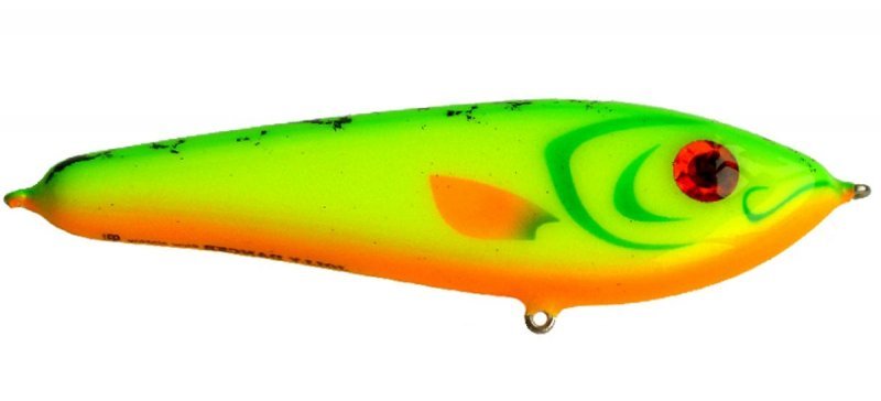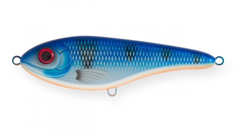 Strike Pro Buster Jerk — эта приманка относится к категории медленно тонущих. Длина максимально достигает 15 см, а ориентировочный вес составляет 75 грамм. Производители уверяют: не нужно бояться того, что рыба не увидит воблер джерк. Даже на большом расстоянии приманка будет привлекать внимание охотницы.