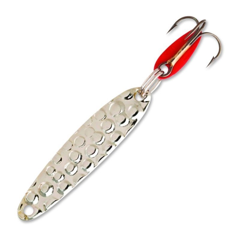 Интересная форма блесны Bay De Noc Swedish Pimple напоминает ивовый листочек, окрашенный в изумительную расцветку. Поверхность блесны обработана по типу раскрошенного льда, что очень нравится хищной рыбе. Большое количество моделей, отличающихся массой и цветовой гаммой, позволяют каждому подобрать идеально подходящее приспособление для ловли жереха. Использование дополнительной насадки по типу бусинки, поспособствует отличному раззадориванию хищной рыбы.