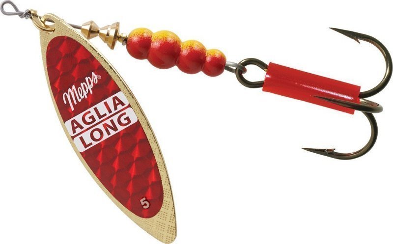 Отличительной чертой приманки Mepps Aglia Long считается наличие особенной формы лепестка (ивовый листок). Благодаря таким очертаниям достигается меньшее сопротивление в воде и стабильность вращения лепестка. Скорость движения приманки не может меняться, что позволяет ей не выпрыгивать из водной глади при сильном течении. Лепесток приспособления обладает меньшей парусностью в сравнении с иными блеснами, что позволяет осуществлять максимально дальний заброс.