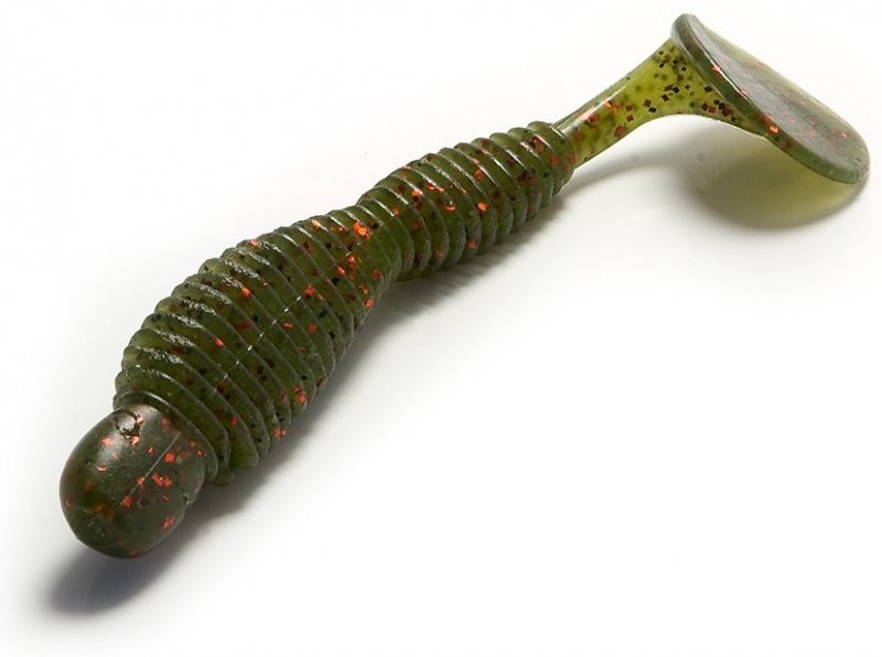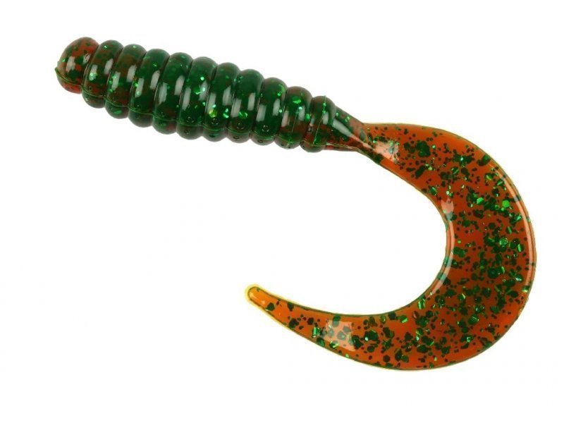 Цвет может быть коричневый, розовый, зеленый, голубой. Эффективно работает на медленной проводке. Для ловли крупного окуня применяются приманки небольшого размера. Производится в размерах 2", 3", 4".