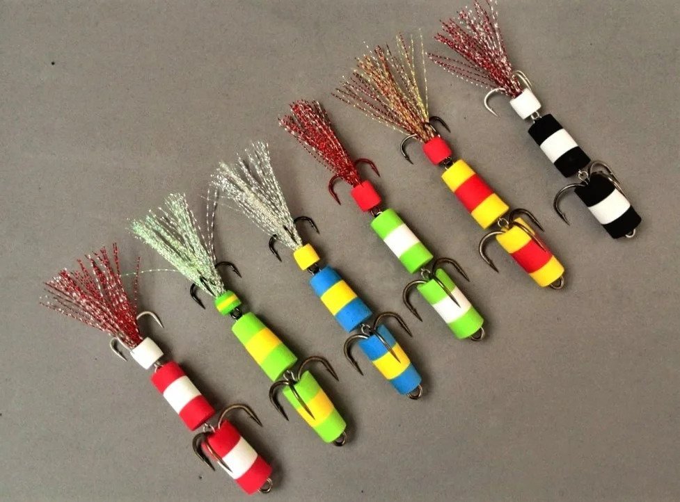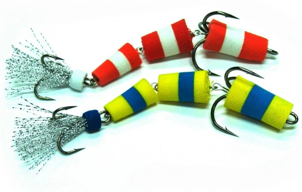 Так же бывают мандулы, состоящие из 4 и более секций и двух-трех тройников. Такие приманки более заметны на дне и применяются при ловле более крупных хищников.