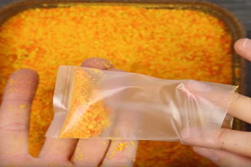 Отправляем его поверх засыпанной на две третьих смеси в мешок.