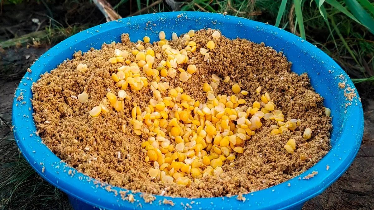 Чтобы удержать эту рыбу на точке, в прикормку в обязательном порядке нужно добавлять крупную фракцию в виде зерновых/бобовых. Пшеница, отварное пшено, кукуруза, горох. Такое лещу интересно, и такое он быстро не съест. Будет копошиться, со дна по зёрнышку собирать. Соответственно, на точке лещ задержится.