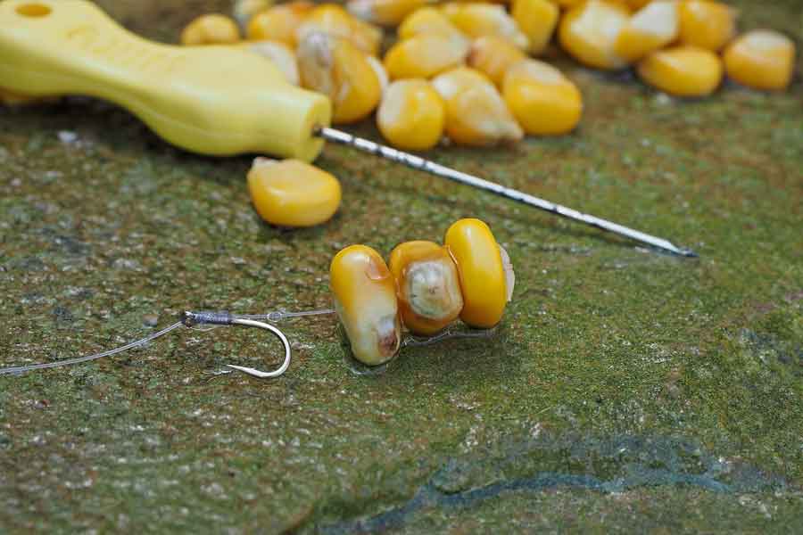 Одно зерно кукурузы быстро исчезает в пасти маленькой белой рыбы. Если вы возьмете два, три или даже четыре зерна, все будет выглядеть по-другому. У линя нет проблем с такой «кукурузной цепью», но плотва, густера и лещ имеют тенденцию постоянно скубать опарыша. Если белая рыба раздражает, то лучше отказаться от использования личинки.