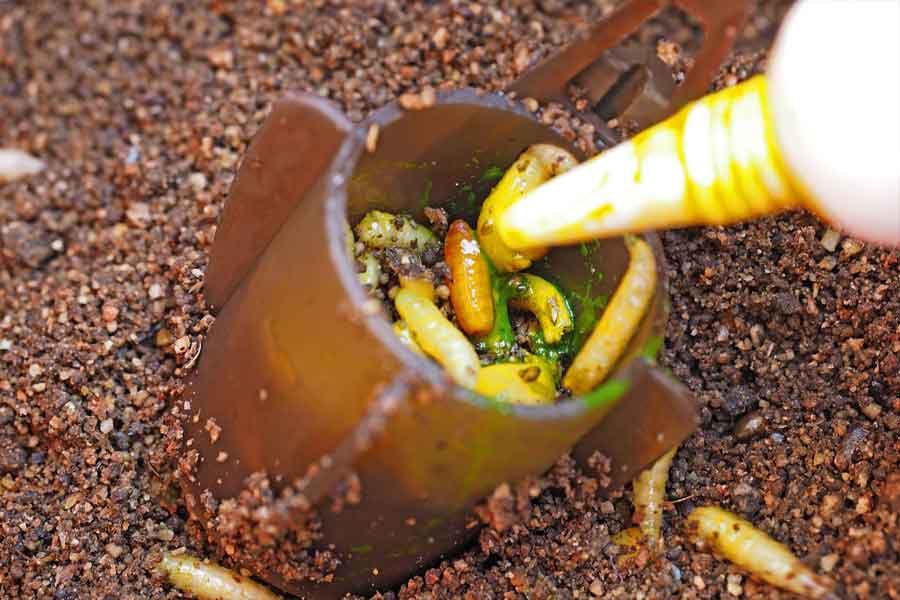 На самом деле, это не настоящий червь, а личинка мучного жука. Но это не имеет значения для линя, он любит есть богатых белками приманки. Мучные черви достаточно устойчивы к атакам мелких рыб, но не помогают против крупной белой рыбы или карпа.