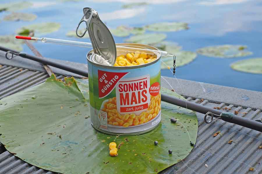 Еще менее привлекательна для маленьких белых рыб: чистая кукуруза. Вы должны, однако, быть более осторожными с количеством, чтобы не насытить линя. Для начала достаточно половины банки. Это также относится к кормлению бойлами или кормовой кукурузой.