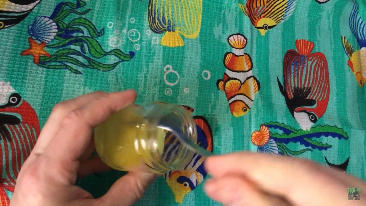 - Желток помещаем в небольшую банку, подойдёт от детского питания, или что-то похожее.