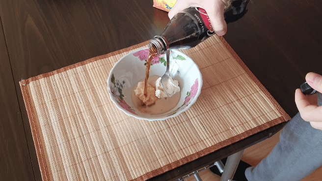 К счастью, творожная масса очень хорошо растворяется в кока-коле.