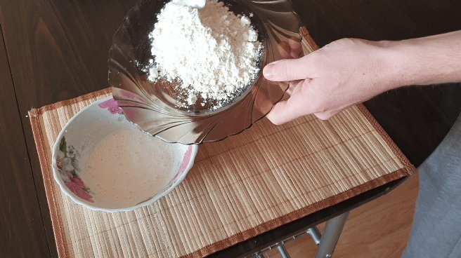 Муку нужно добавлять по чуть-чуть, чтобы тесто не получилось слишком жёстким.