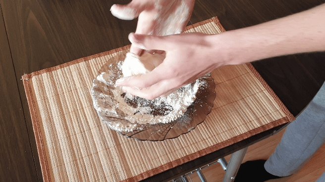 Как только тесто перестанет прилипать к рукам, оно полностью готово к рыбалке.