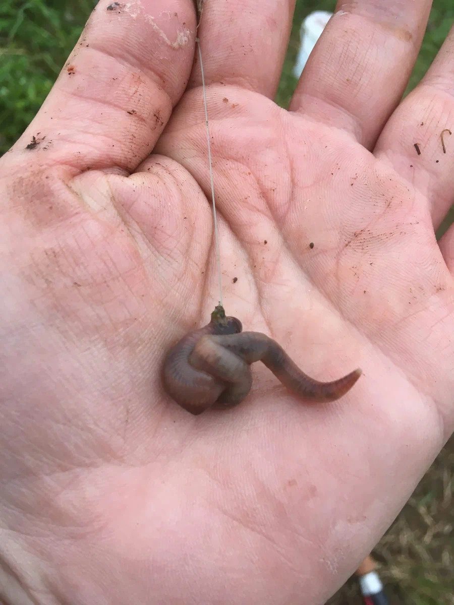 - Такая манипуляция делает червя более компактным, а запах среза быстрее распространяется в воде.