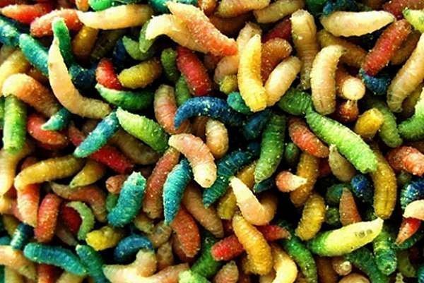 Чтобы получить опарыша желтого цвета, в его рацион следует ввести яичный желток. Можно добавить и краситель, но для этого нужно использовать обычный творог. Если в творог не добавлять никаких красителей, то в результате можно получить личинку молочно-белого цвета. Если в творог добавлять различные пищевые красители, то процесс окрашивания личинок упрощается, а эффект в результате значительный. Но в творог можно добавлять не только красители, но и различные фруктовые соки, например сок вишни или черешни.