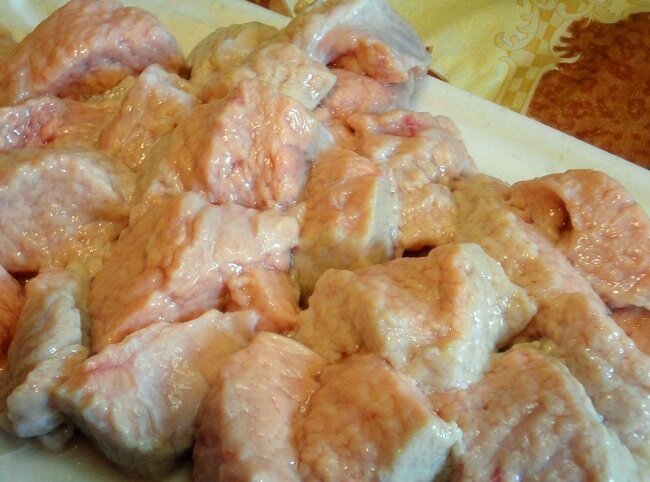 Необходимо просто нарезать свежее вымя на кусочки, под используемый в ловле рыболовный крючок - полосками, кубиками разных размеров, а после, расфасовав по пакетикам, заморозить.