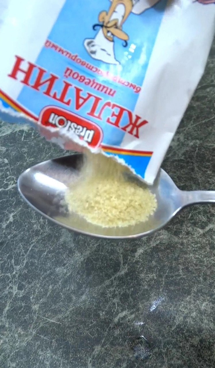Взяв одну столовую ложку желатина, в хорошим настроение и с улыбкой на лице я перемолол его на подаренной тещей кофемолке.