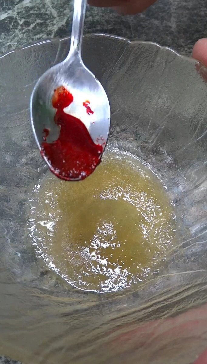 Ко всем этим ингредиентам я добавил пару капель красного красителя, хорошенько перемешав, все это дело я поставил на водяную баню 15 минут постоянно помешивая.
