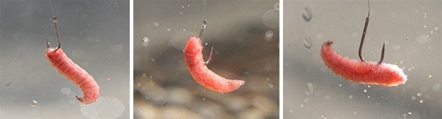 Технология насаживания опарыша на крючок – это очень деликатное дело. Если его неправильно насадить, то он очень быстро погибнет и не сможет приманить рыбу. Он очень маленький, по сравнению, например, с дождевым червем, а поэтому крючок должен быть маленького размера и очень острый. Он прокалывается таким образом, чтобы не повредить мышцы, а это возможно лишь тогда, когда прокалывается лишь верхний слой кожицы. При такой технологии он будет оставаться живым длительное время, и будет играть на крючке, постоянно приманивая рыбу.