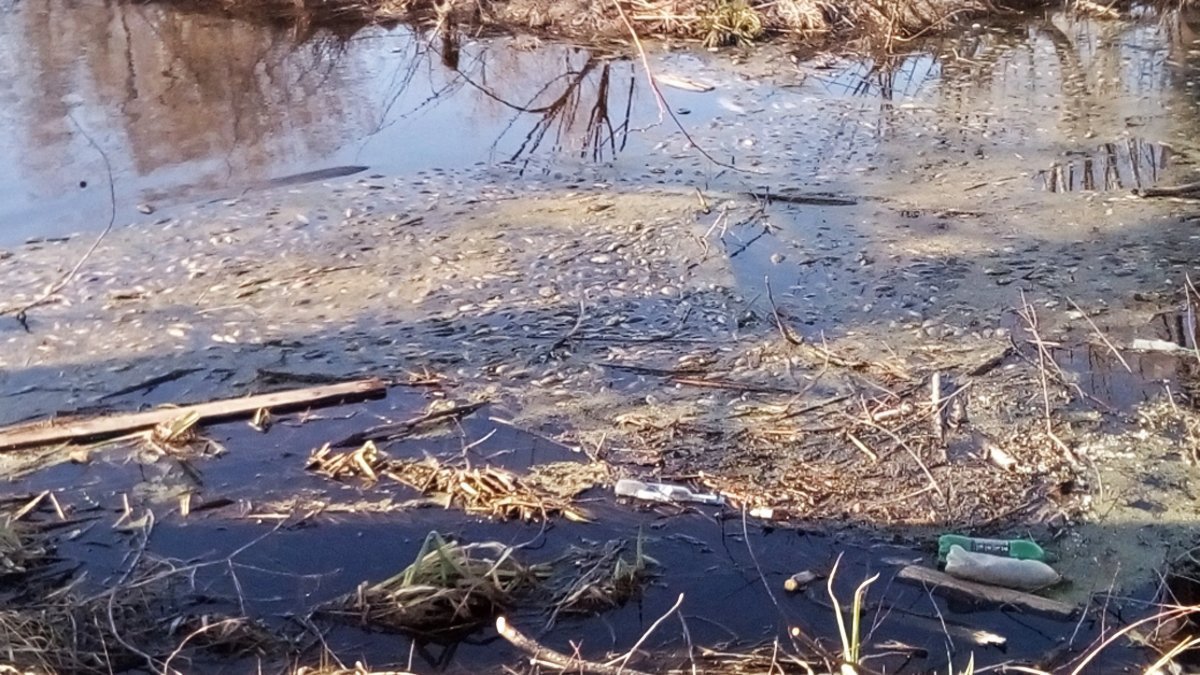 В водоеме остается и живая рыба, но ее состояние тоже вызывает тревогу. Очевидцы рассказывают, что караси держатся у берега, выглядят болезненными и «облезлыми».