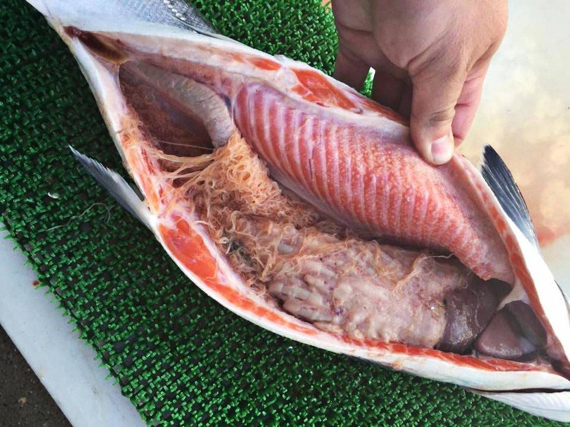 По словам девушки, внешне товар выглядел нормально. Но при разделке обнаружилось, что внутри полно червей. Таким образом, девушка не получила даже свои 800 г рыбы — часть этого веса заняли паразиты. Минтай пришлось утилизировать.