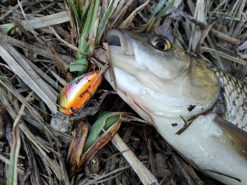 В воде воблер ведет себя, как и описывает производитель. Довольно быстро погружается на рабочую глубину, на паузах быстро всплывает, что очень сильно помогает при необходимости обойти какие-то подводные препятствия. И еще о заглублении. При проводке воблера против течения и при опущенной к поверхности воды вершинки спиннинга, можно заглубить приманку до 50-60 см. Roger достаточно упорист, при проводке ощущается биение воблера, которое на паузе сразу затухает. Но я бы не сказал, что он очень нагружает снасть, как, допустим, большие кренки. Им я ловил и на спиннинг с тестом до 1.5 грамм, это конечно извращение, но очень уж хотелось поймать щуку на очень деликатную снасть, что в итоге и получилось). Еще хотелось бы отметить то, как этот воблер держит течение. Боковая струя, водоворот-при правильно подобранном угле проводки, воблер четко следует заданной траектории.