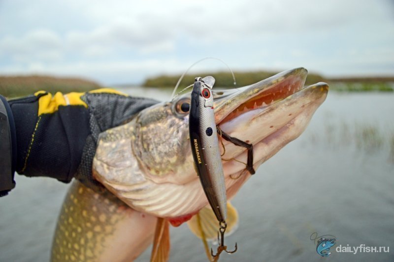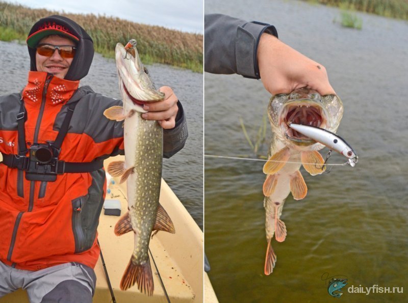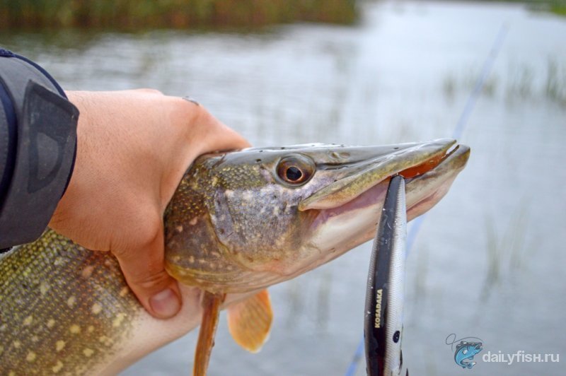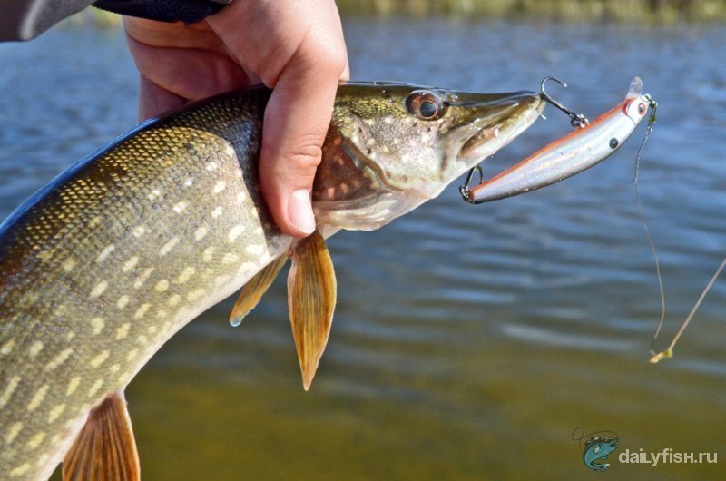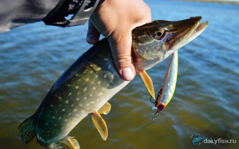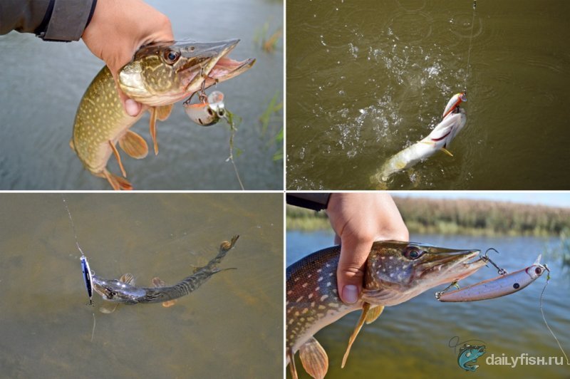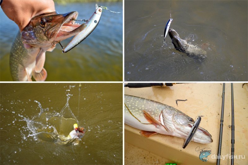 Проводка зачастую представляет собой серии рывков по 1-2-3 с микро паузами в доли секунды, чтобы щука могла прицелиться и атаковать свою добычу. Но если промедлить чуть дольше, то вот уже спина Интры выступает на водной глади… Конечно, иногда и с поверхности щука его подбирает, но на моей практике «подповерхностных» поклевок больше в разы.
