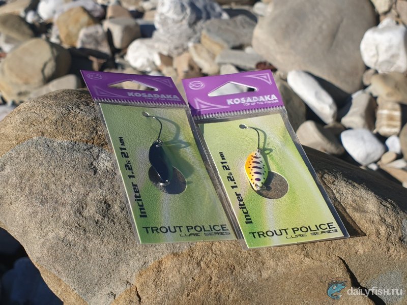 На одной из таких небольших речушек я отловил всю осень прошлго года. Минус реки в том, что на ней мало крупной рыбы, и если ее мало, то нужно ли использовать крупные приманки? Маленькие голавлики будут хватать и на 40-ые воблерки, но лично мне их приятнее ловить на небольшие ул-колебалочки. В модельном ряду колеблющихся блесен Kosadaka Trout Police я нашел немало интересных блесен, которые отлично подходили под мои требования, и одна из них называется Inciter.