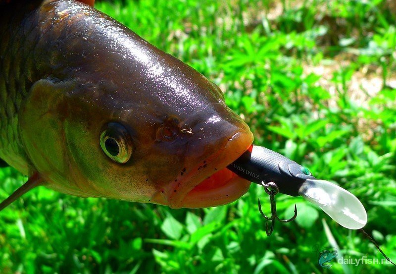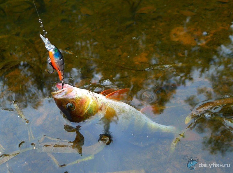 Помимо окуня время от времени на ZUMI MINI обязательно будет покушаться щука, если она конечно обтает поблизости. Если же ловим вблизи голавлевых тенистых берегов, то лобастый запросто может атаковать этого малька, особенно по осени и в конце весны, хотя нет-нет, да и летом влетает, особенно если ловим на воблер в темной расцветке или в полупрозрачной.