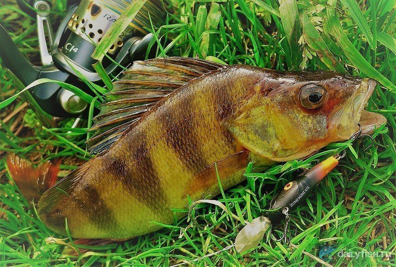 Но для окуня этот маленький симпатяга просто настоящий истребитель, особенно погожими днями, в любимую окунями солнечную погодку, как раз, когда та же щука прячется и не подает признаков активности. Тут можно спокойно полавливать полосатых без всяких металлических поводков, но в пасмурные дни небольшой поводок для защиты от щучьих зубов не помешает.