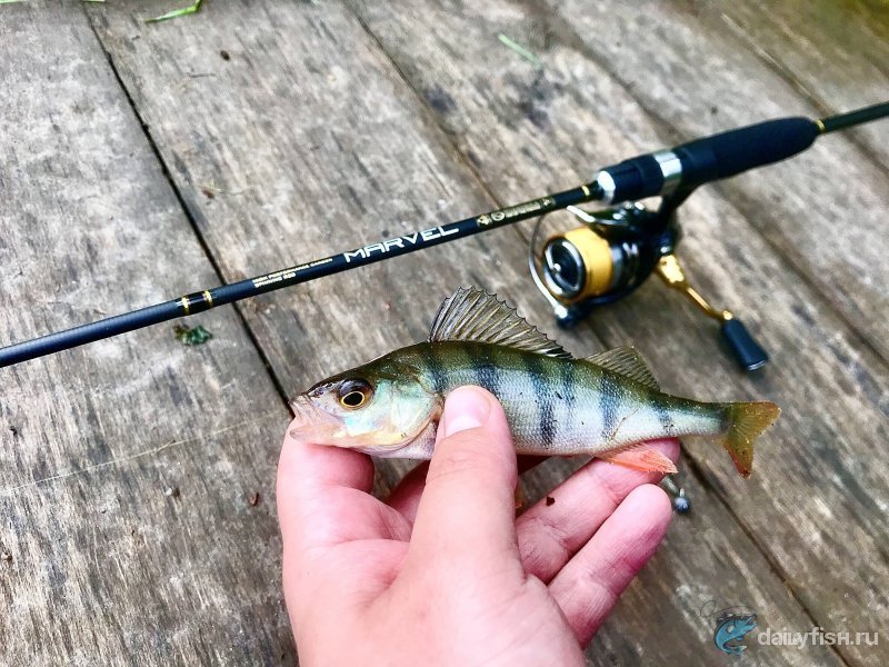 Хоть спиннинг и жесткий, но рыбу держит отлично. Жесткость помогает неплохо просечь рыбью пасть, особенно, это будет важно тем, кто охотится за микроджиговым судаком. На вываживании включается бланк, примерно, до второй половины и гасит львиную долю рывков. Окунек от 30-50 граммов уже отрабатывается Kosadaka Marvel 183UL и приносит удовольствие на вываживании.
