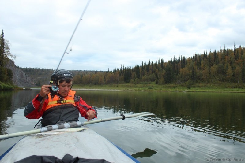 Обычно это выглядело так: после очередного переката или шиверы я быстро доставал спиннинг и делал несколько забросов по ходу, пока нас несло течением. Надо сказать, что при таком методе клевало ничуть не хуже чем с берега, и попадался очень крупный хариус. Ловить с борта Kosadaka Expedition 6S-Dual оказалось очень удобно, в варианте 210 см он отлично умещался на деке байдарки.