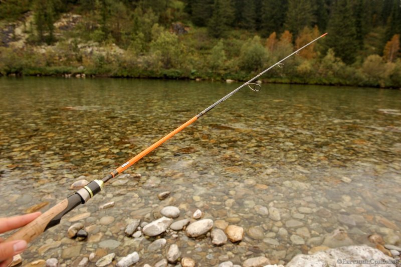 В таком варианте спиннинг довольно жесткий, что для бурного течения очень хорошо - позволяет делать точные забросы и удерживать в струе приманку, обводя препятствия. Поклевка тоже чувствуется отлично, а вываживать сильную рыбу таким легким удилищем в бурной воде приносит бурю эмоций!